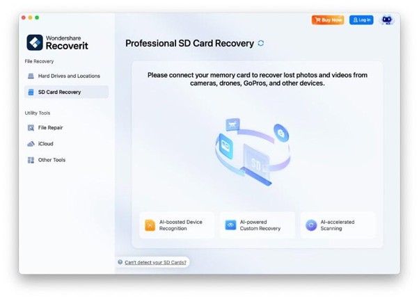 When you connect your SD card to the Mac, choose and access the tool’s “SD Card Recovery” feature.